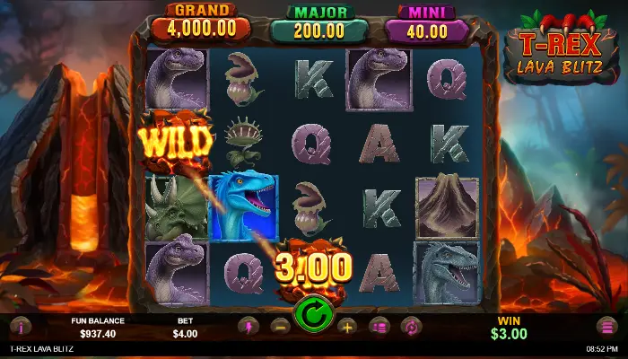 If a Lava Rock hits any T-Rex symbol, a jackpot is awarded: